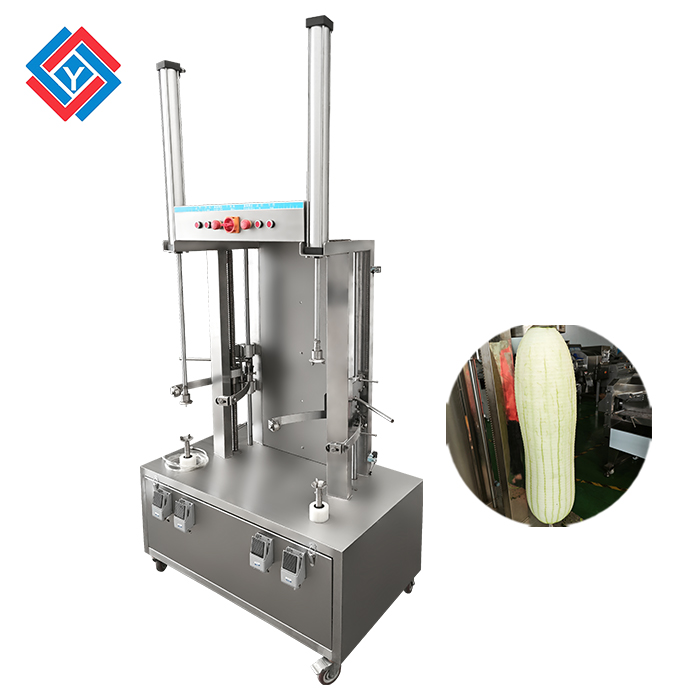 雙頭瓜果削皮機JYXP-106-2適用于木瓜、哈密瓜、西瓜等瓜果削皮,削皮厚薄可調(diào),方便。刀組上下自動循環(huán)削切效率高,去皮率達到95%以上。削皮刀架設(shè)計,可使瓜皮定向排出,方便收集清理。機器拆洗方便,使用時操作簡單,衛(wèi)生,適合餐飲行業(yè),飯?zhí)?,食品加工廠使用。